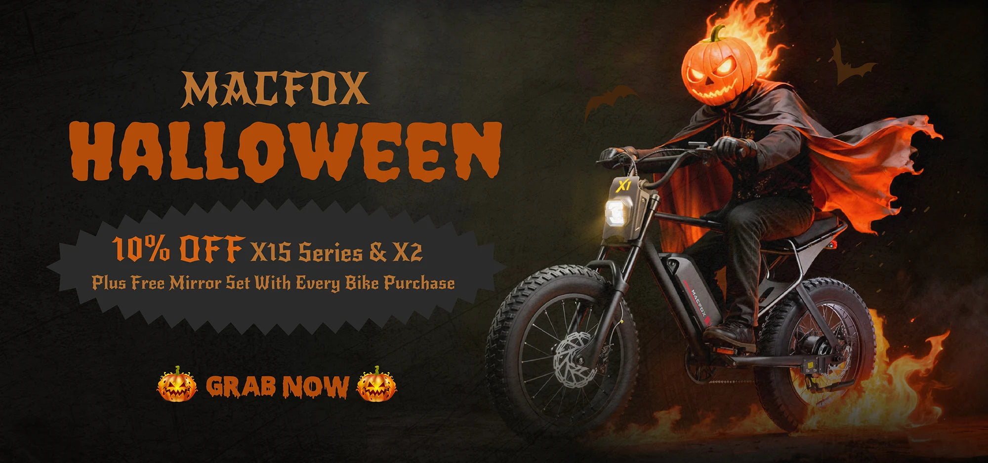 This Halloween, treat yourself to more than candy. With 10% OFF the Macfox X1S, X1S × Bs.Zay, and X2, plus free mirrors for purchases during the promotion, there’s no better time to ride in style.